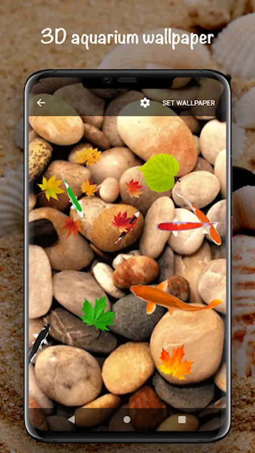 The Fish On Screen 3D Wallpaper is one of the best fish aquarium wallpaper applications. It makes your phone look like a tank of fishes with ripple effect. Set up your wallpaper or lock screen with many colored fish will make you have good spirit when you open you phone. Many special features are available for you, not only change background of the aquarium but also you can control the number or speed of the fishes!