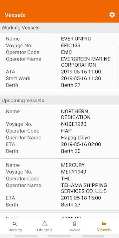 - Check working and upcoming vessels