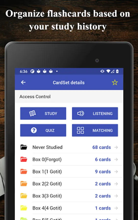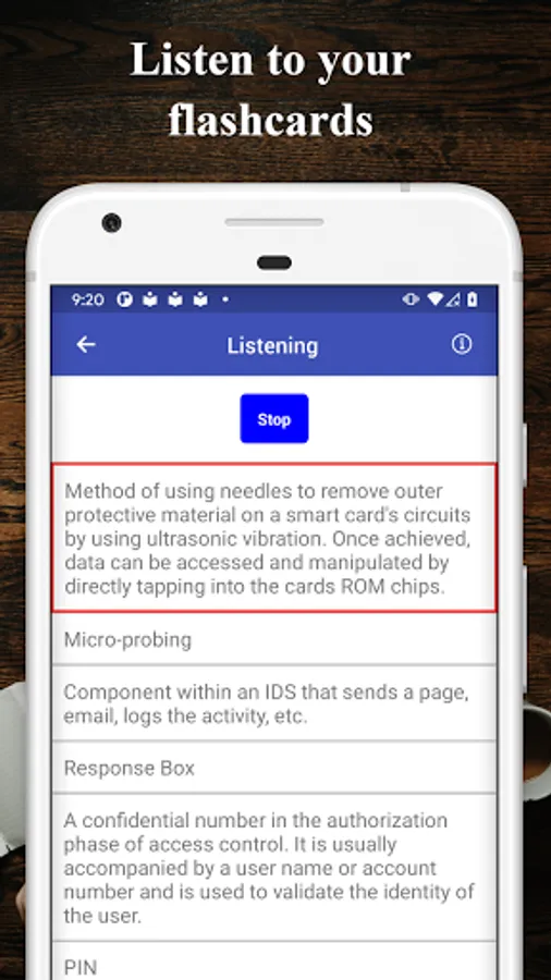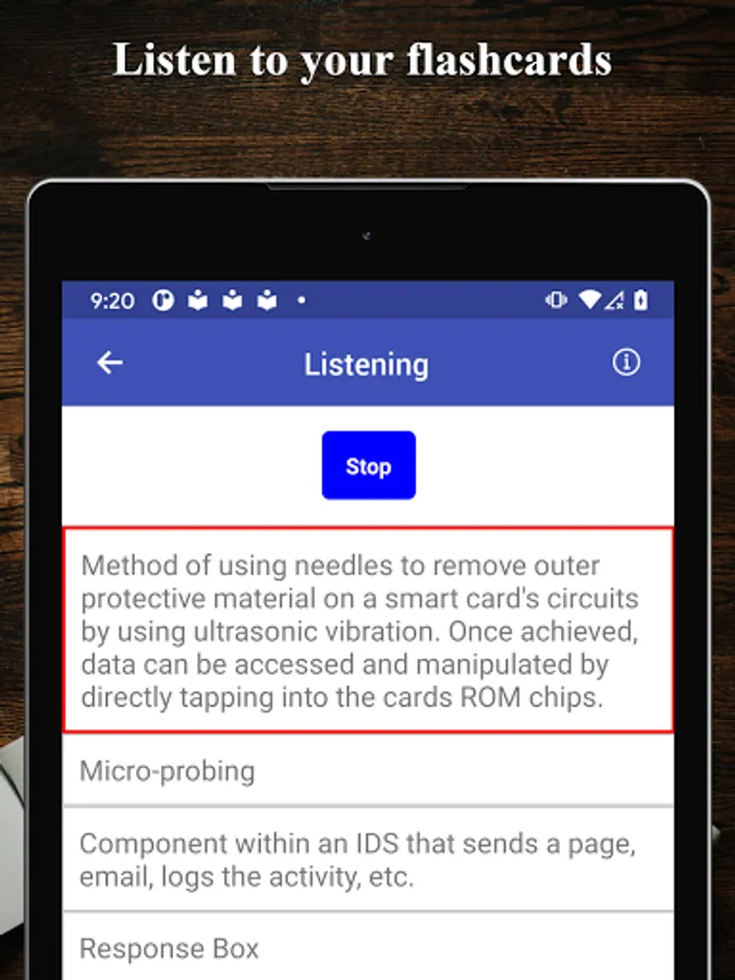 • Text to speech to study flashcards without looking at screens.