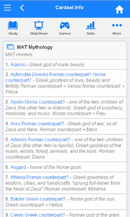 Using Flashcard will help you learn faster and remember more in a shorter time by showing flashcards just before you will forget them. MAT Flashcards app has several learning modes: Study, Slide show, Matching, Memorize, Quiz to make the learning process for MAT exam more exciting and fun.