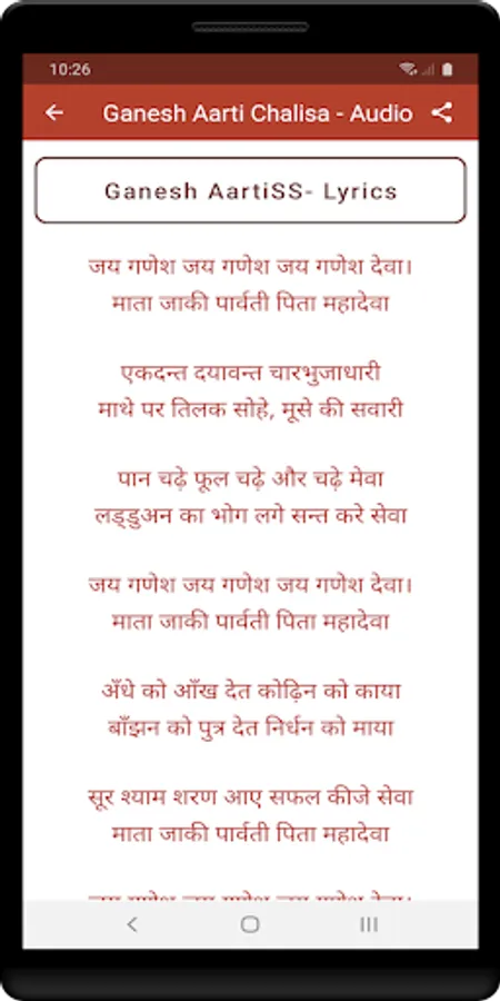 - Having Multiple full HD audio tracks for Lord Shree Ganesh Bhajans.