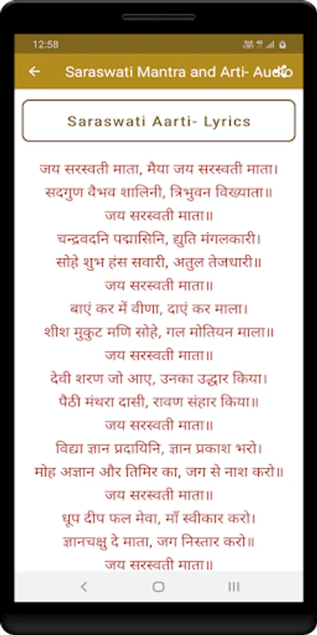 - Audio tracks Goddess Shri Saraswati Mantra.