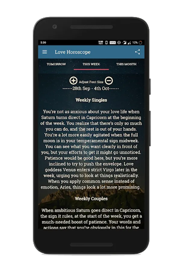 Choose your date of birth and read your horoscope based on your zodiac sign. Choose your partner's sign and see the horoscope for them.