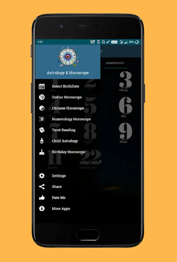 Select your Birth date and it automatically captures your Zodiac Sign, Chinese Zodiac sign and Numerology sign