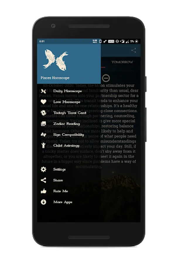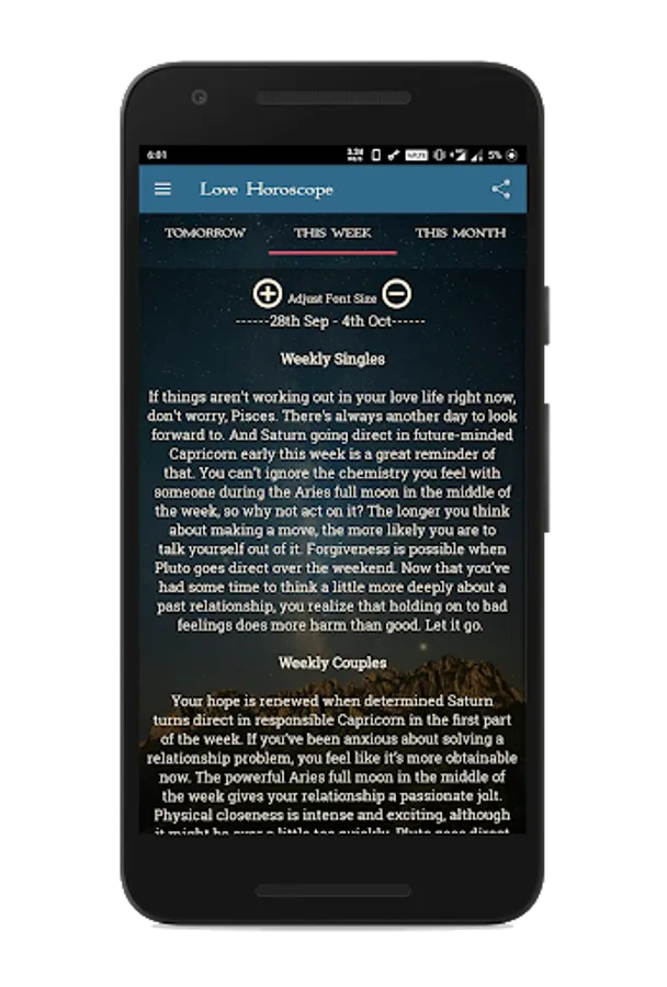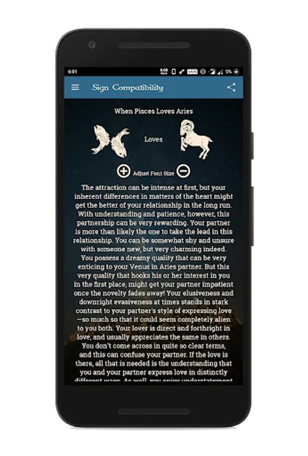 Choose your date of birth and read your horoscope based on your zodiac sign. Choose your partner's sign and see the horoscope for them.