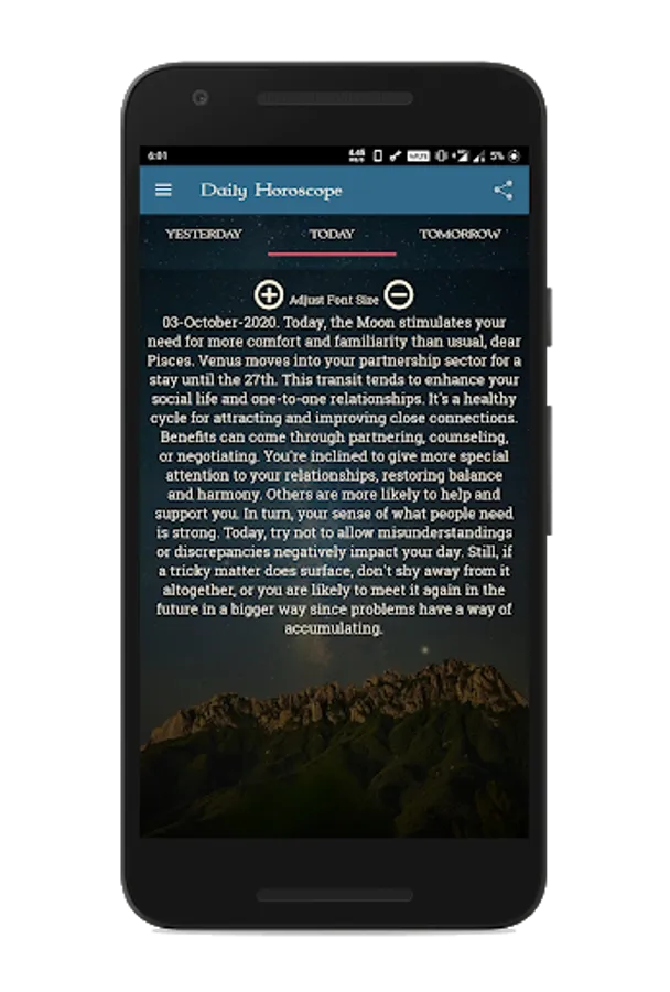 Slide back and forth for Yesterday's and Tomorrow's horoscope