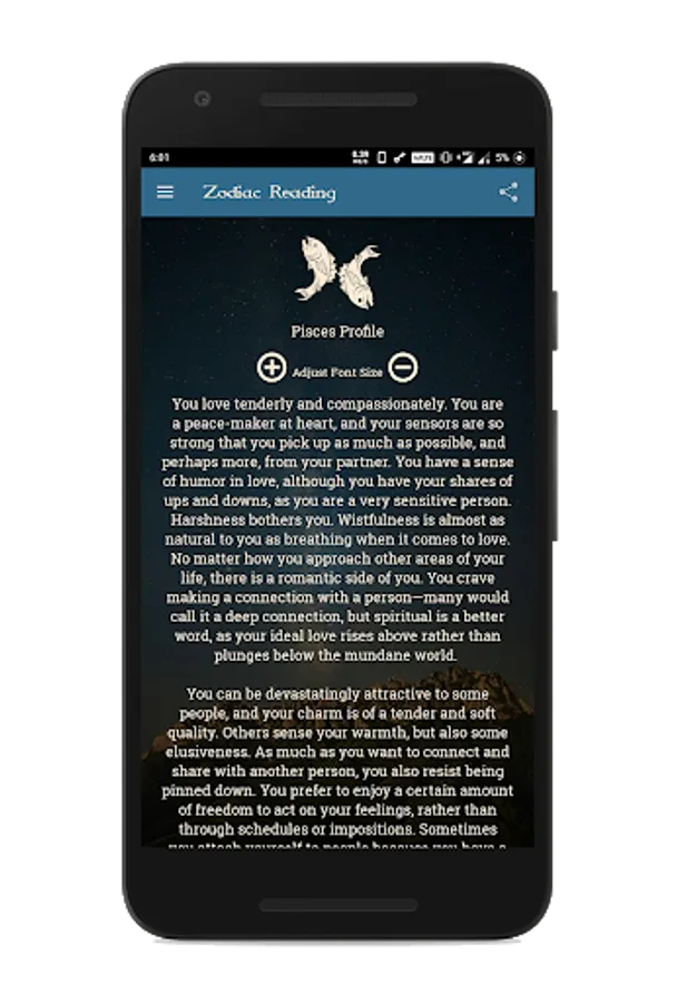 Overview of your Zodiac Sign Profile. Gives you in general information about your personality traits, Character, Nature etc