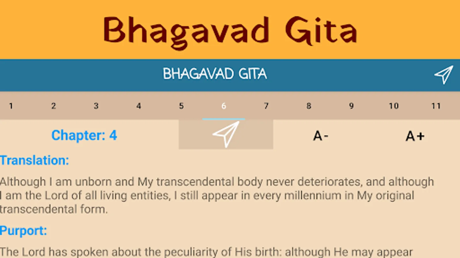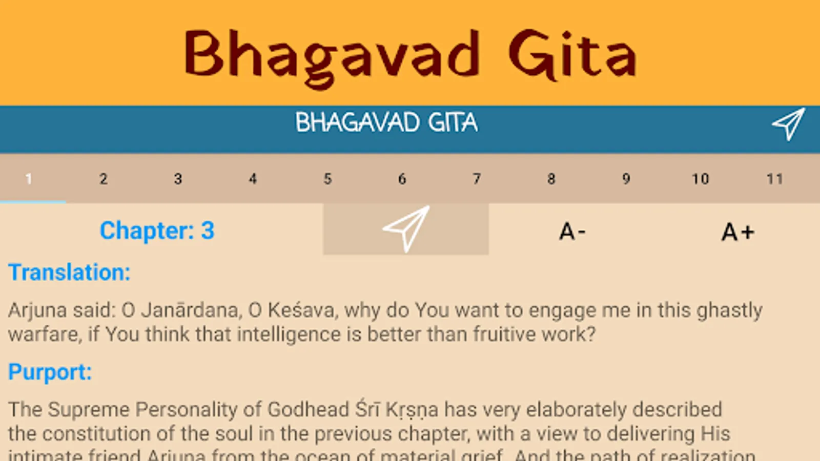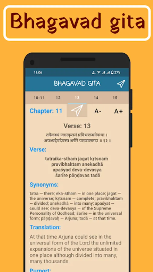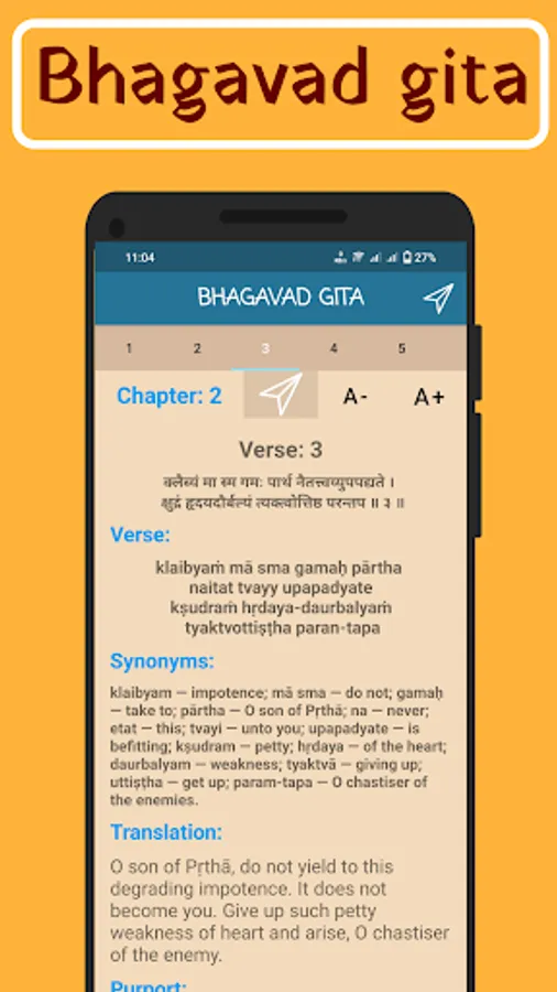 • All 18 chapters of Bhagavad Gita book