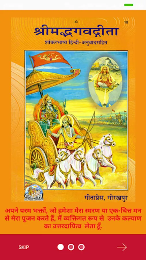 This app very essay to use,just swap left to right to move paging.it is complete package for Gita,Its powered by Gita Press Gorakhpur publication.Eassy to understand in deep.and read this book and you will attach with God.