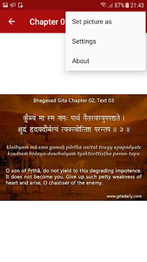 Slokas from the most widely read Bhagavad Gita As It Is by Srila Prabhupada, founder of ISKCON.