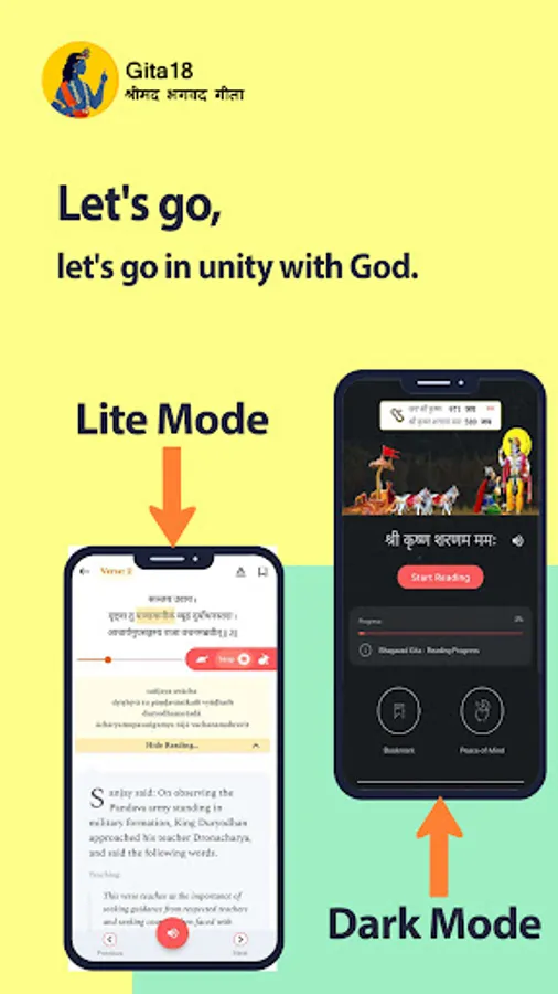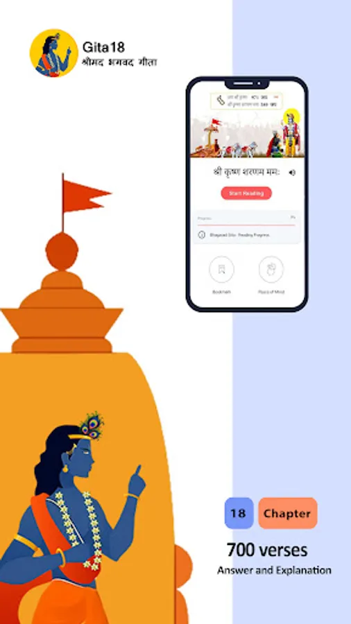 Carry the profound teachings of the Bhagavad Gita in your pocket with the "Bhagavad Gita: Gita18" app. This beautifully designed and user-friendly app offers complete translations of the Bhagavad Gita in English, Hindi, Gujarati, Tamil, Telugu, and Odia making it your ideal companion for spiritual growth.