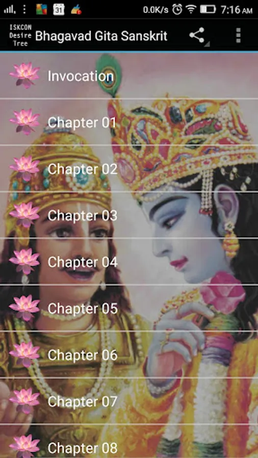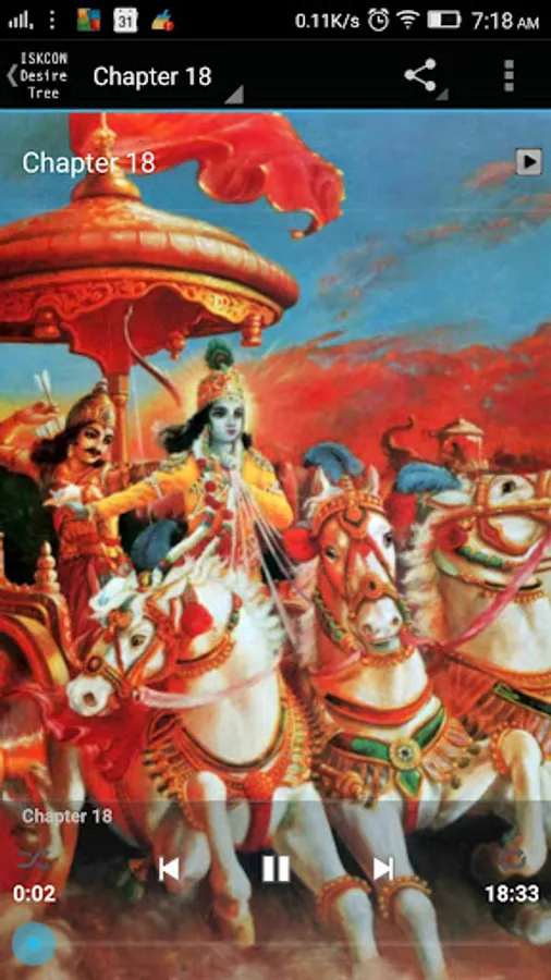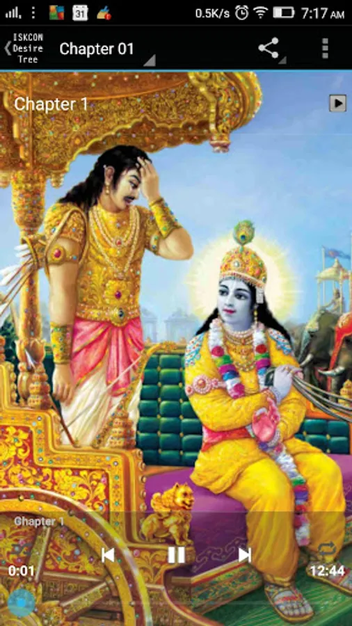As we read the Gita, we read a narration by Sanjaya, a disciple of Vyasadeva's, to the blind King Dhrtarastra, the father of the impious Kauravas. Situated far from the battlefield, Sanjaya relates the holy discourse as it is revealed to him by Vyasadeva through supernatural vision.