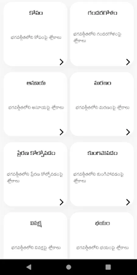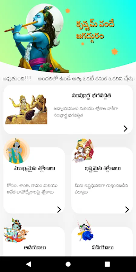 Explore the divine wisdom of Bhagwath Gita in Telugu with our comprehensive app. Read and learn about the various slokas and their meanings, listen to audio songs and watch videos for better understanding. Our unique emotion-based clustering feature allows you to easily find the slokas that resonate with your current emotional state. Discover the power of Bhagwath Gita and elevate your spiritual journey with this one-of-a-kind app.