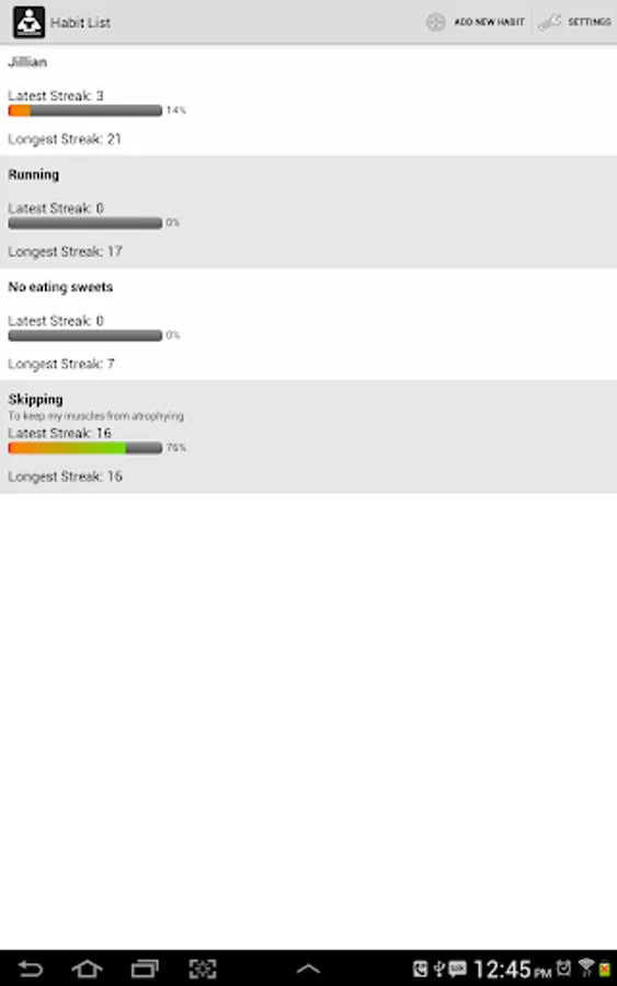 This app works best for single activities performed daily. Like getting up early, reading a little, writing a little, coding etc. After a while you just won't feel like breaking your streak and create a gap in your line of stars. Great motivation to just GET THE DAMN THING DONE!