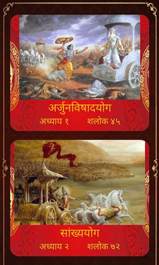 The shrimad bhagavad gita hindi also referred to as gita is a 700 verse sloka scripture that is part of the ancient Sanskrit epic Mahabharata. This scripture contains a conversation between Pandava prince arjuna the warrior and his guide Krishna on a variety of philosophical issues. Krishna through the course of the shrimad bhagavad gita hindi imparts to Arjuna wisdom the path to devotion and the doctrine of selfless action. shrimad bhagavad gita hindi upholds the essence and the philosophical tradition of the Upanishads. shrimad bhagavad gita hindi also integrates dualism and theism.