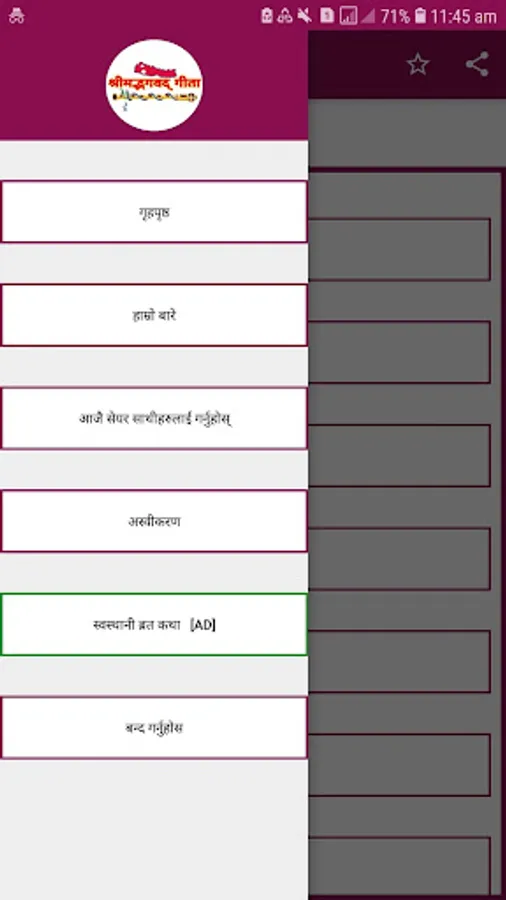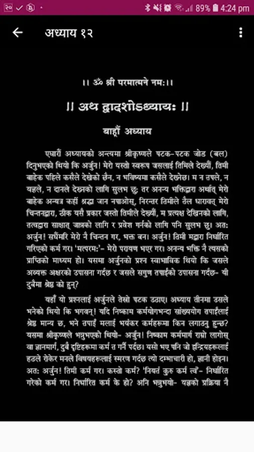 Complete Bhagavad Gita with Nepali translations and descriptions.