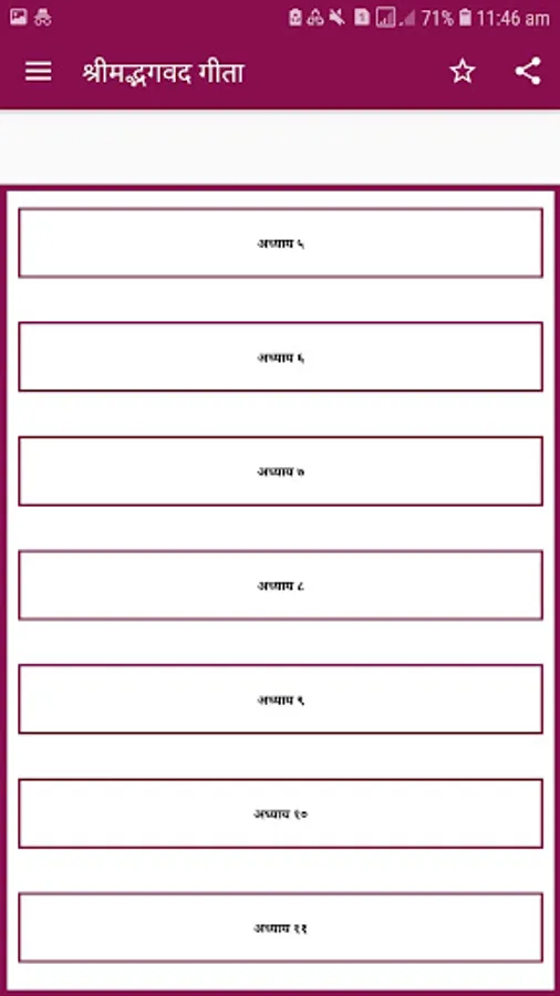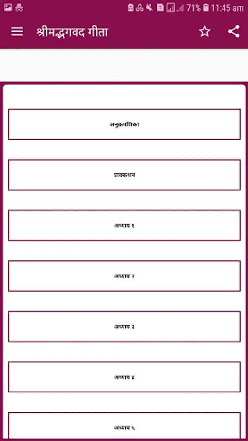 • Share feature to easily send your favorite Bhagavad Gita shloka / verse to your friends