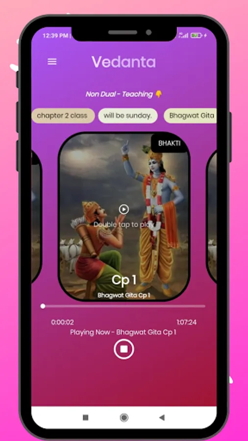 Vedanta App has The Bhagwat Gita chapters that has 700 verses. Vedanta App has detail explanation of each verse from experts all around the world.