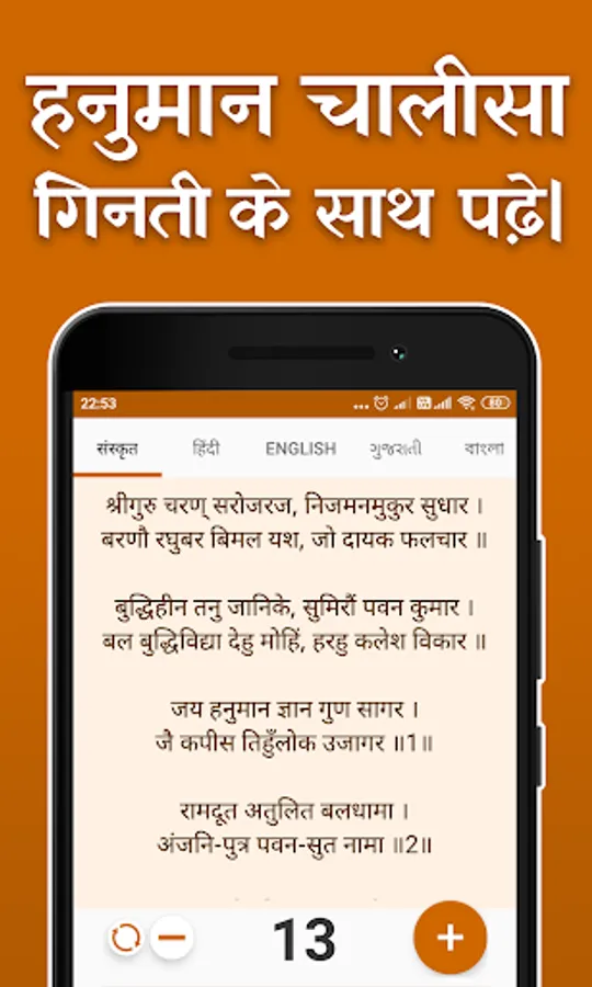 2. Hanuman Chalisa Counter - Count the number of times you recited Hanuman chalisa using the app. Millions of poeple chant Hanuman chalisa every day. Some chant for 7 times each day. Also many chant Hanuman chalisa 11 times per day for a continuous period of 40 days i.e one mandalam. Very dedicated devotees chant for 100 times a day. They prefer starting form Tuesday for the chanting.