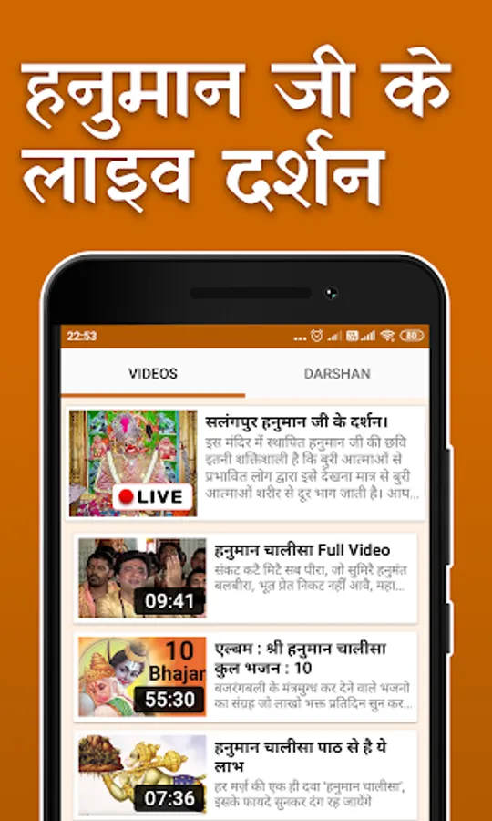 Hanuman Chalisa and Darshan presents you an "All on One app" for everything related to Bajrang Bali Hanuman Ji - 'Bhaktapps Hanuman Chalisa'. Includes all services - Hanuman Chalisa in 8 different languages including Sanskrit, Hindi, English, Gujarati, Bangla, Tamil and many more. Daily darshan of Sarangpur Hanumanj ji, Bhajan Collection of Hanuman Ji with chalisa.