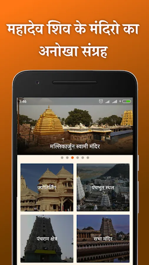 All these 12 Jyotirlingas, panchbhoot, sabha temples, pancharama temples and other famous temples including temples from foreign countries are listed in a beautiful format in Hindi language. It also includes Shiva temples with picture of the temple and the all the description and details in Hindi.