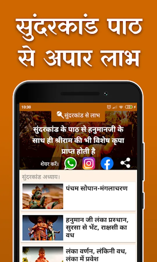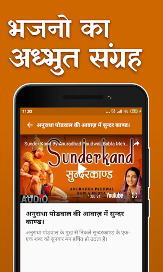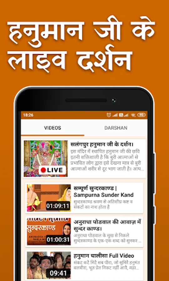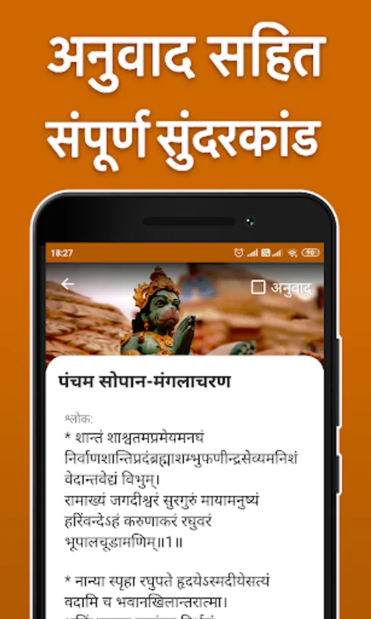 Sundarkaand and hanuman Darshan presents you an "All on One app" for everything related to Bajrang Bali Hanuman Ji - 'Bhaktapps Sundarkaand'. Includes all services - Sundarkaand with translation. Daily darshan of Sarangpur Hanumanj ji, Bhajan Collection of Hanuman Ji with Sundarkaand.