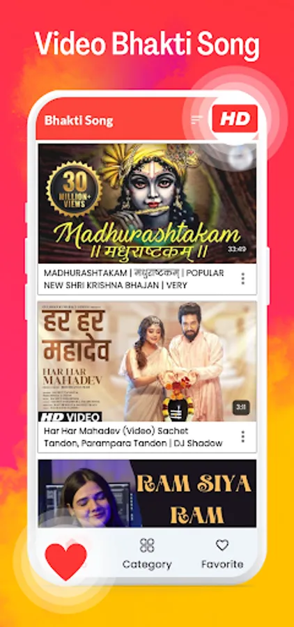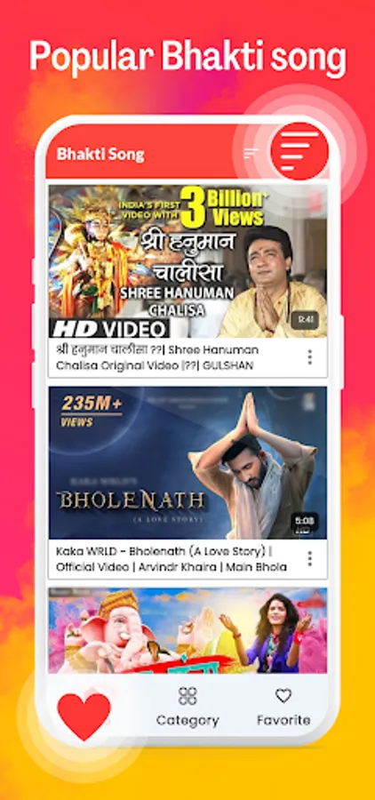 Bhakti Song - Bhajan Geet is a devotional app that lets you listen to and watch your favorite bhajans, kirtans and devotional songs for free. With a collection of old and new Hindi bhakti geet, you can listen to mesmerizing bhajans any time. A wide range of bhajans and kirtans dedicated to various Hindu gods and goddesses, this app lets you immerse in the world of devotion and spirituality. This app offers the largest collection of Hindu devotional tracks to help you connect with the Divine. Immerse yourself in the tranquil ambiance of Bhakti music anytime, anywhere.