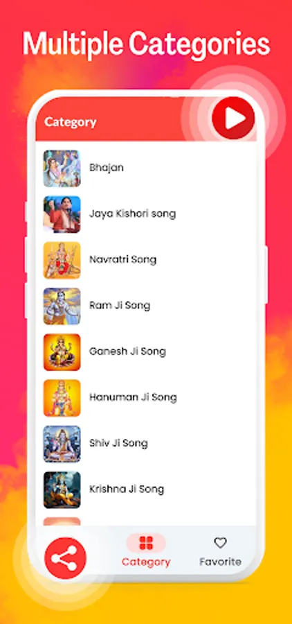 - Categories like Shiv ji, Krishn ji, Ram ji, Hanuman ji, Devi, Ganesha bhajans etc