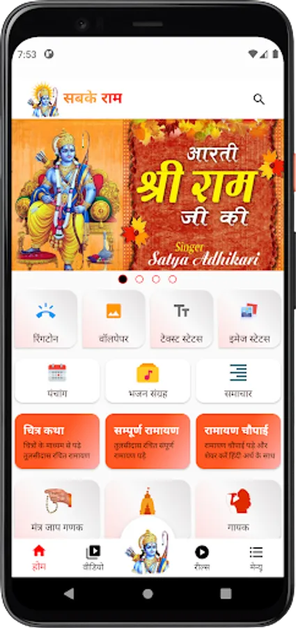 Lord Ram Ringtone (राम रिंगटोन) , you will find the ringtones of Mantra, Bhajans, Chalisa, aarti, katha, Prarthana and more of the most famous singer.