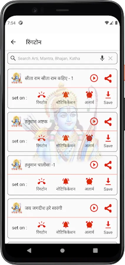 This app has the most popular Shree Ram bhajan Ringtones which you can use as a ringtone, notification ringtone, alarm ringtone, or contact ringtone.