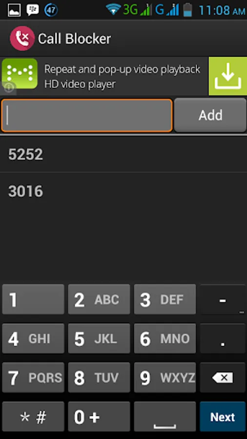 CallBlocker can use for block incoming call form people unwanted. You can add list phone number that want block. You can entry full number, or Only part phone number.