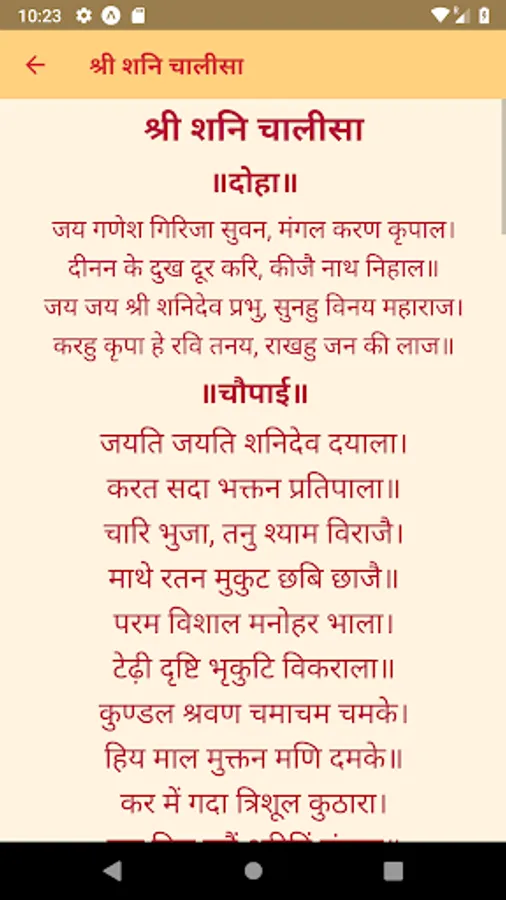 shani chalisa, shani mantra, shani dev aarti, shani dev katha app has a shani chalisa lyrics and audio, shani dev aarti lyrics and audio and collection of shani dev mantra, shani dev katha and 108 names of shani dev.