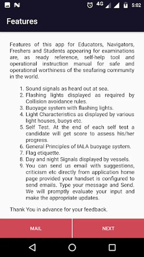 This ROR Mobile application has been devised to assist Educators, Navigators and Students appearing for examinations as a ready reference, self-help tool and operational instruction manual for the safe and operational worthiness of the seafaring community in the world.