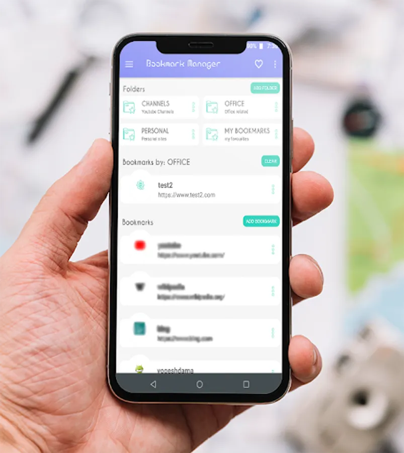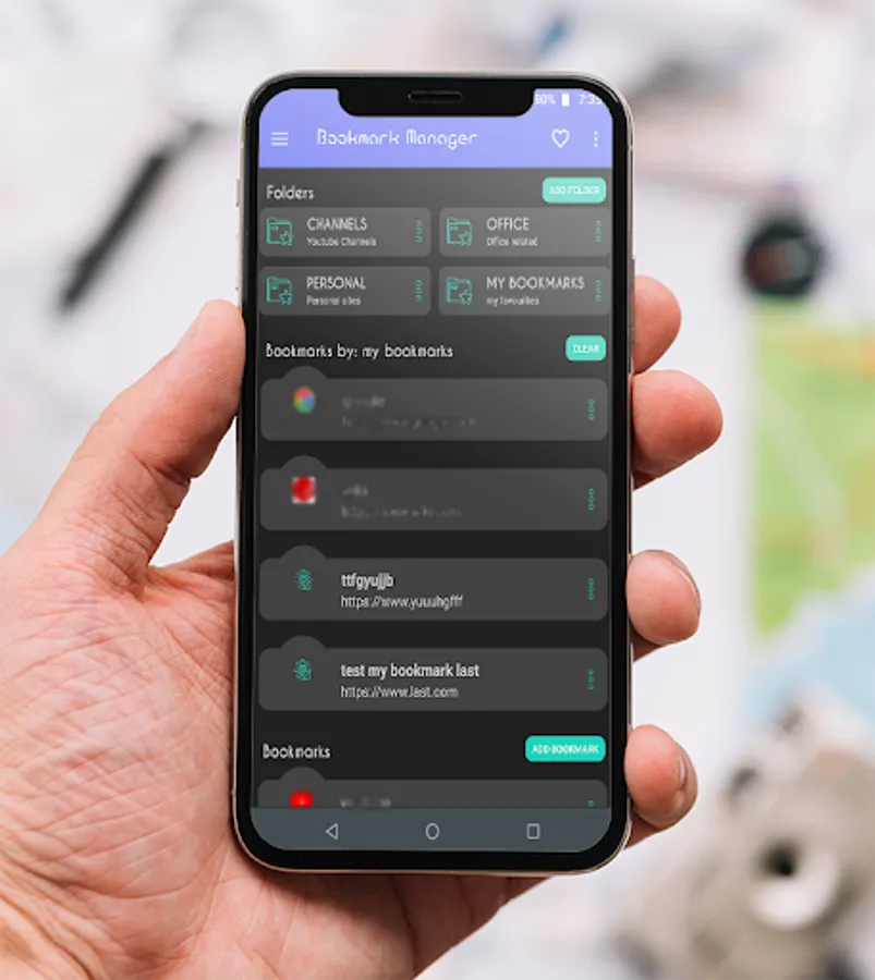 Bookmark Management app to save bookmarks independently from the browser. Save, browse and manage all bookmarks easily and quickly by Bookmark Manager app.