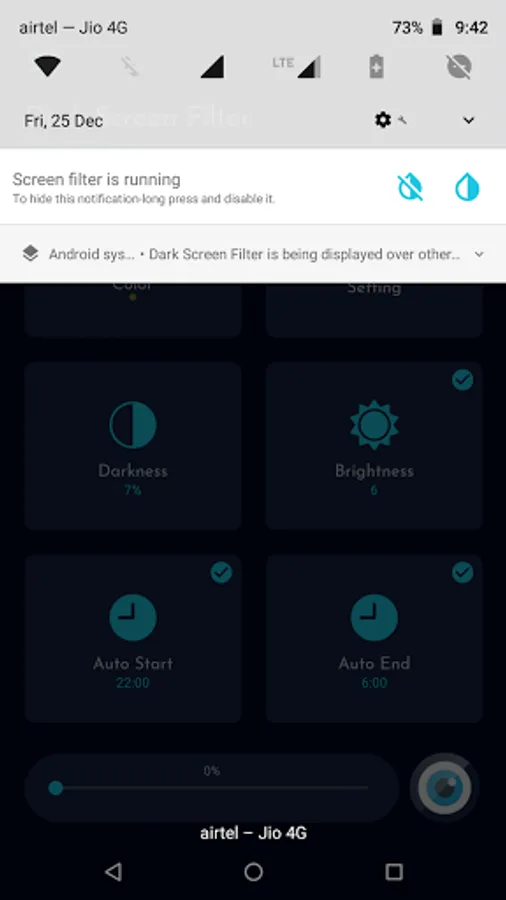 ◇ Permanent notification to activate or stop screen filter quickly from notification
