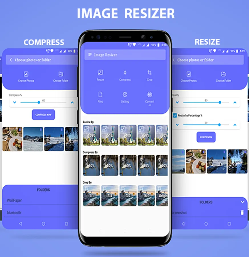 Resize photos and gallery pictures, its Photo Resizer app to resize photos, compress images and Crop images.