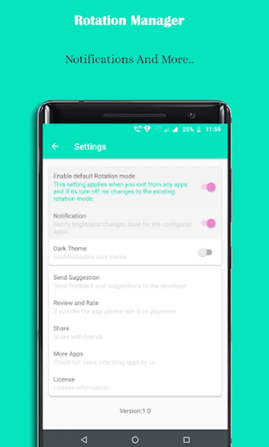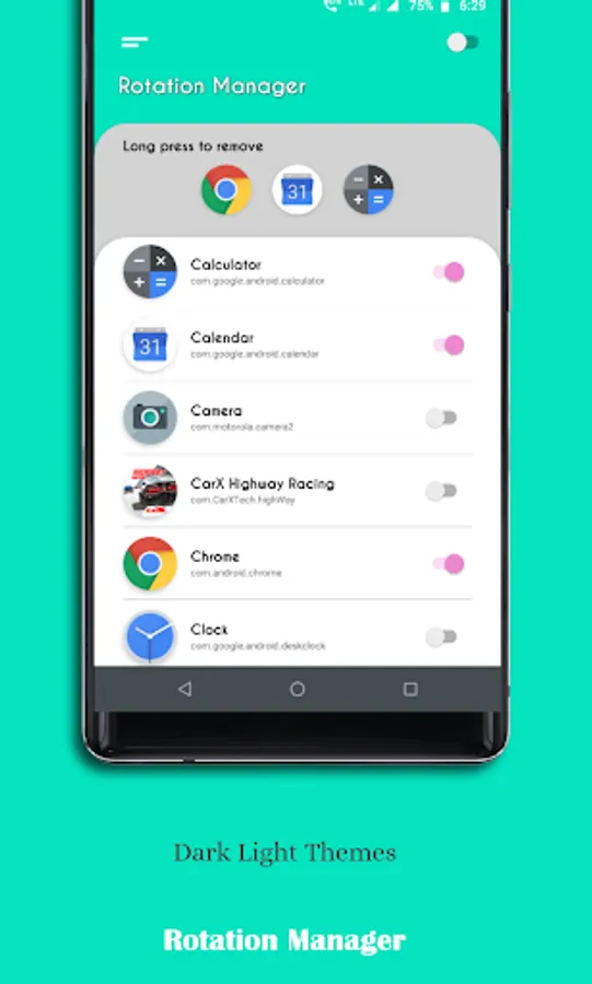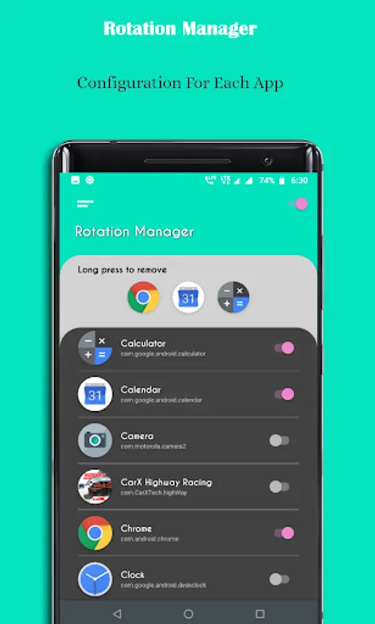 ◇ Enable apps for auto rotation control.