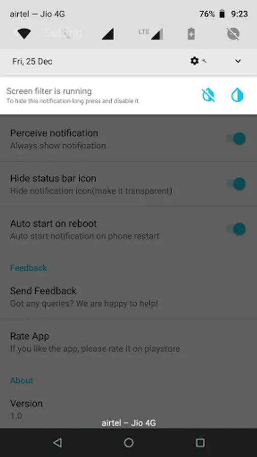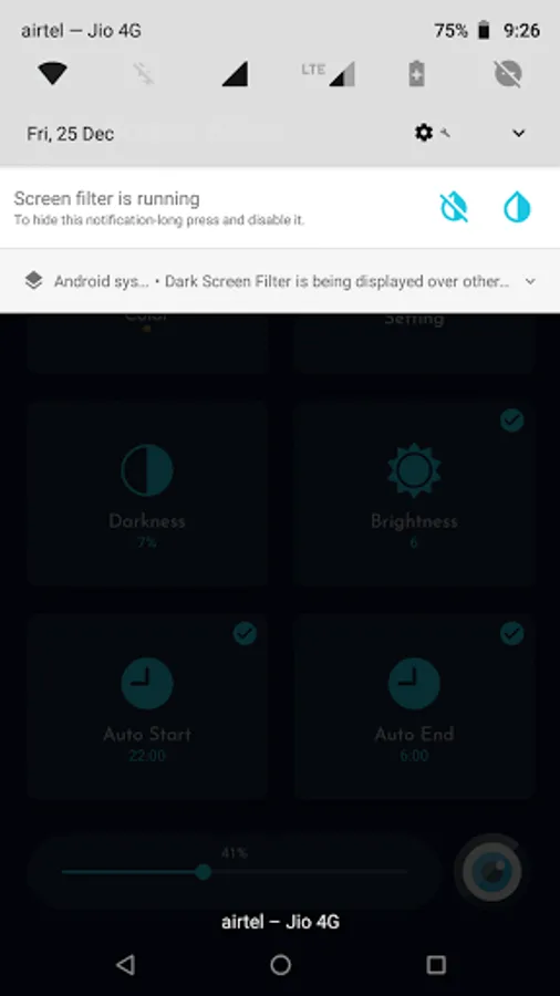 ◇ Permanent notification to activate or stop screen filter quickly from notification