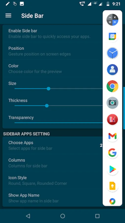 Change the style of side bar, color, transparency, icon style - everything you can customize as per your need.