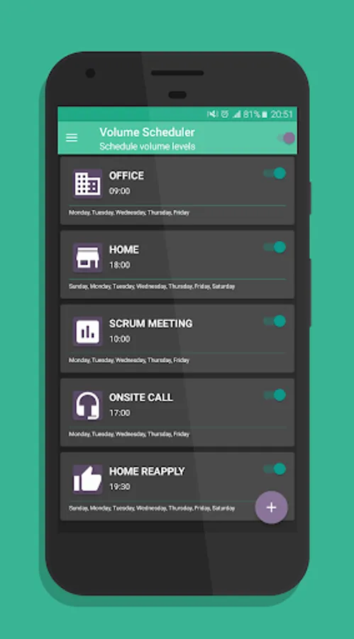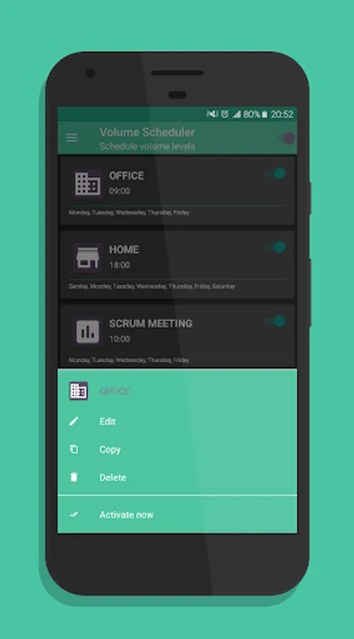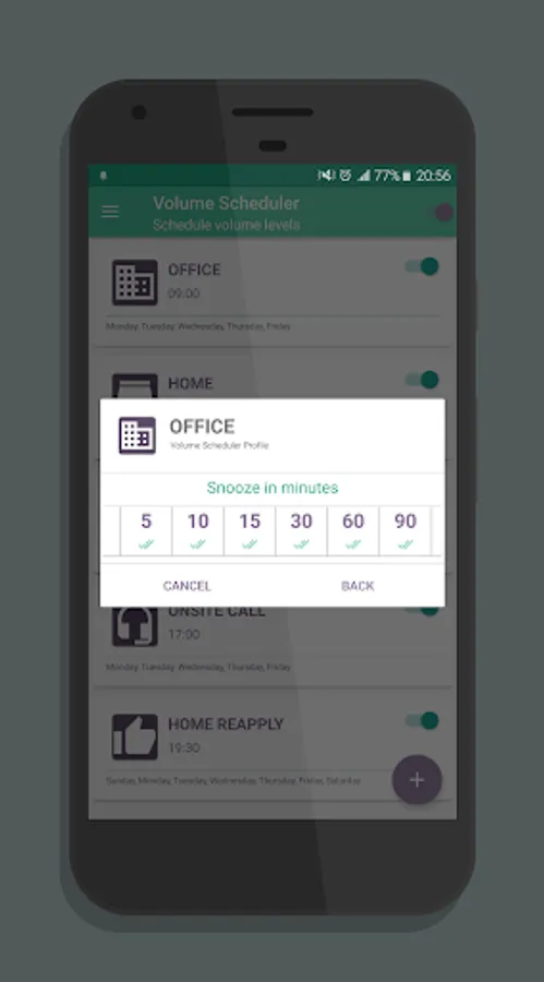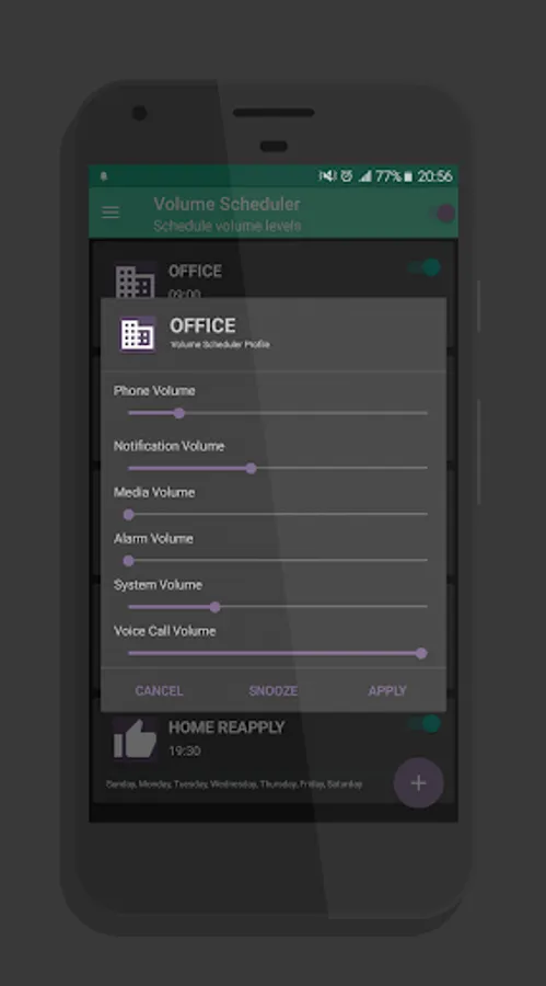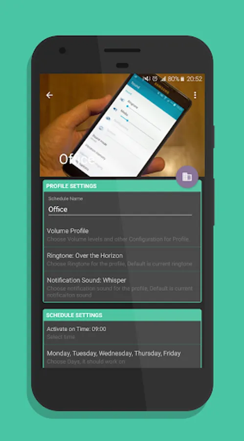 Volume Scheduler is very simple app that do not use any background service neither it uses gps, wifi and such other android services to change the profile, you simply need to specify the time you want to change the profile, most of the time you are well aware of your schedule, still some time things are not as per schedule like you get late to office, or at home, so app provide you the snooze/postponed options, so you can postponed applying the silent / loud profile by just single tap.