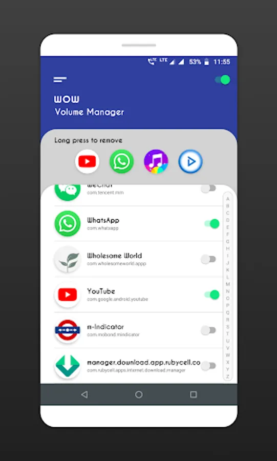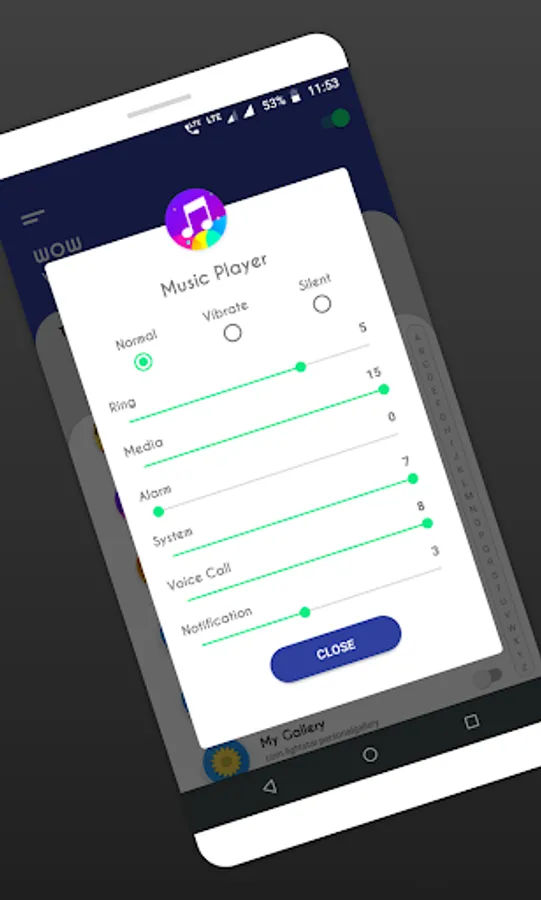 WOW Volume Manager makes its easy to control different volume levels for android such as Ring, music, alarm, incall voice, notification etc.