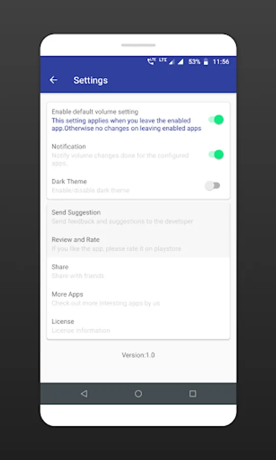 ✔ By default, this default volume setting is OFF, this means, volume settings will remain same after leaving the app you enabled.