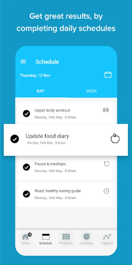 - View Meal Plans, Recipes, your Food Diary, and track your results