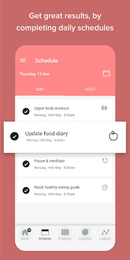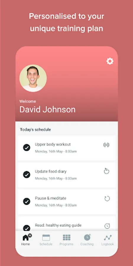All in one personal training including custom workouts, demo videos, nutrition coaching, macro count, live video, and daily check-ins.