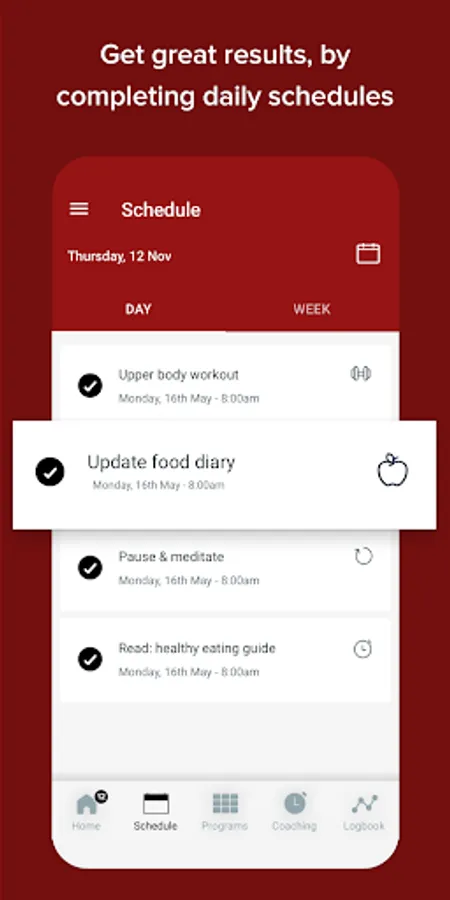Custom tailored fully scheduled programs and meal plan with notification reminders so you always stay connected to your program.