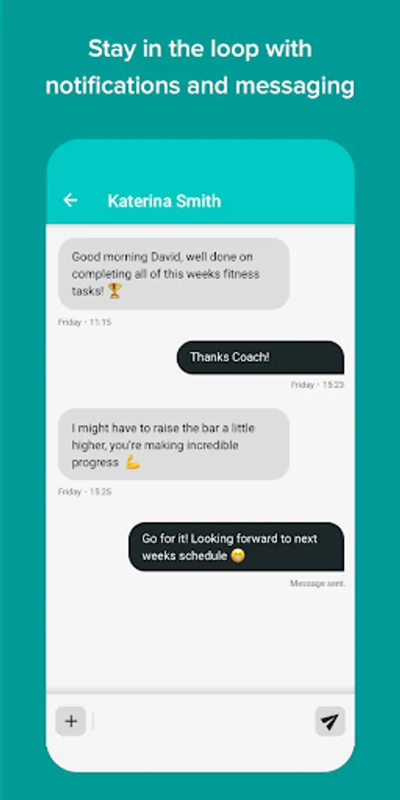 -Get 1 on 1 guidance with an expert Fitness coach through the messaging app. Message me in real time, available for any questions/best advice 24/7