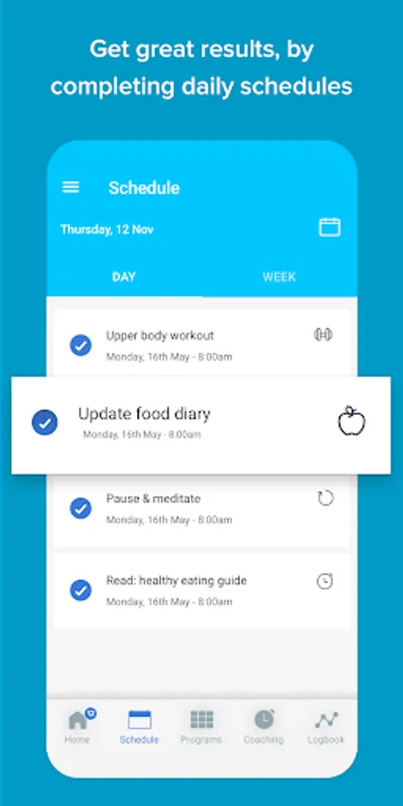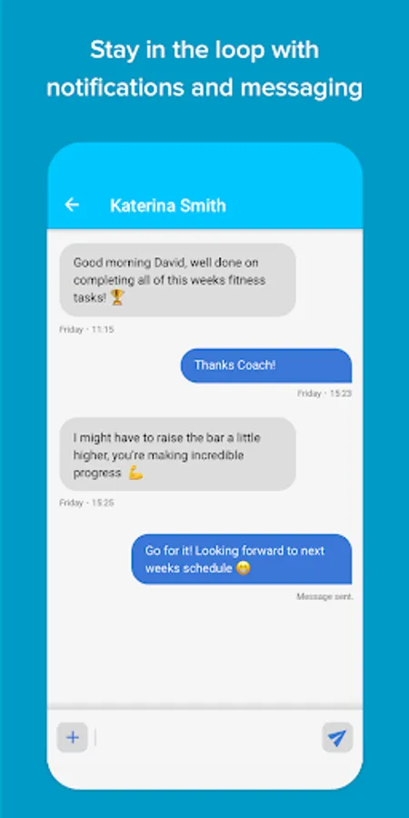 * Receive customized workouts, nutritional information and motivation from your coach directly to your phone