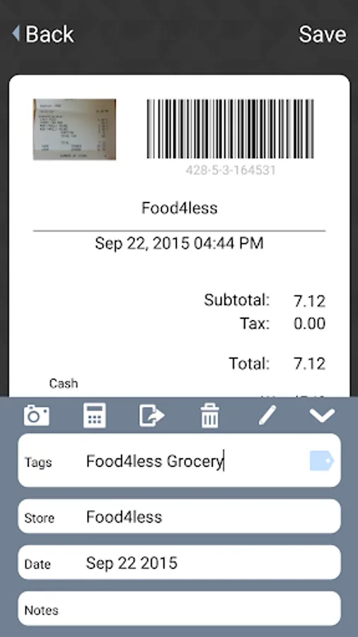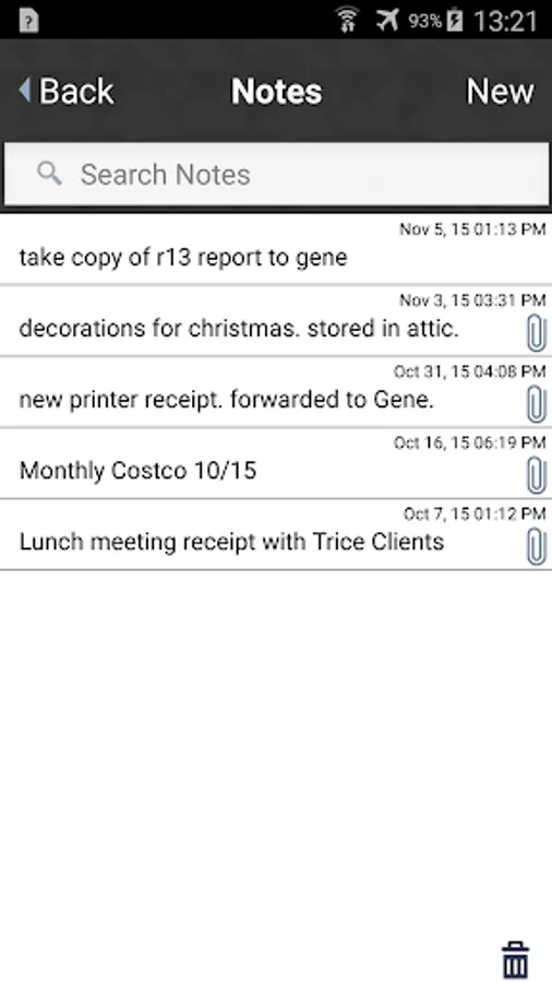 * All notes are aggregated into one place, with or without receipts.