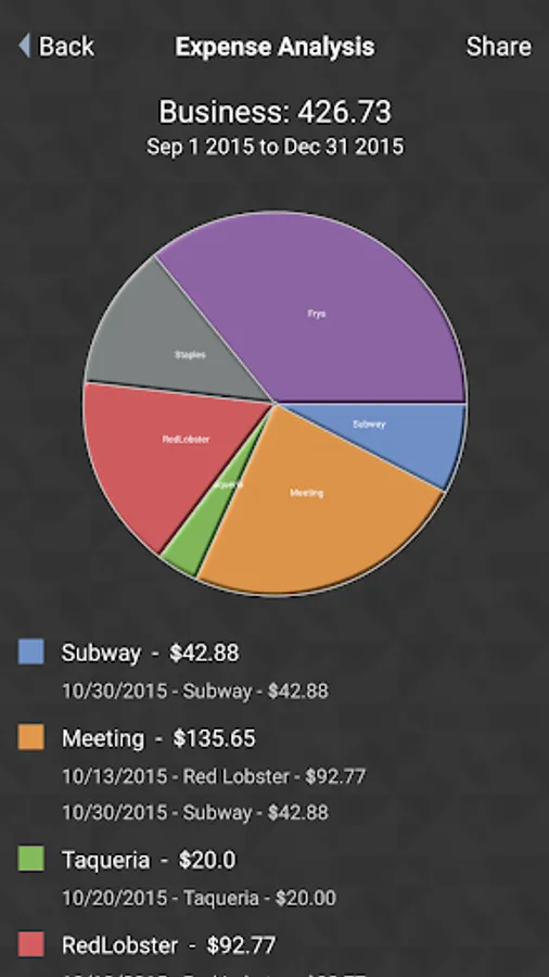Making your phone into an expense reporting, receipt pattern analyzing tool should be a simple process. With RPW the process is clean and efficient. Receipts are tagged and stored within the application to provide useful analysis of expenses.