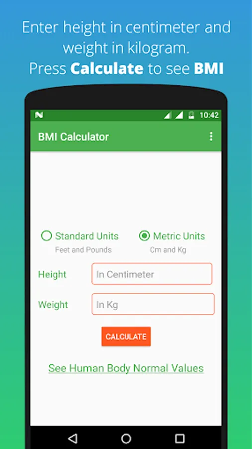 The app is designed for people of different ages and supports for both metric and imperial.